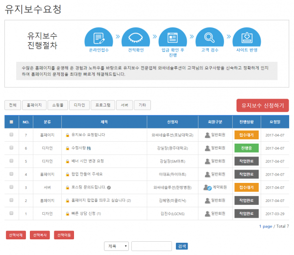 **와싸네 유지보수 게시판 스킨 업데이트 패치**